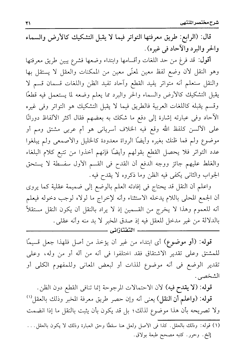 (¬١) قوله: وذلك بالعقل. كذا فى الأصل ولعل هنا سقطًا وحق العبارة وذلك لا يكون بالعقل. . . إلخ. وحرر. كتبه مصحح طبعة بولاق.