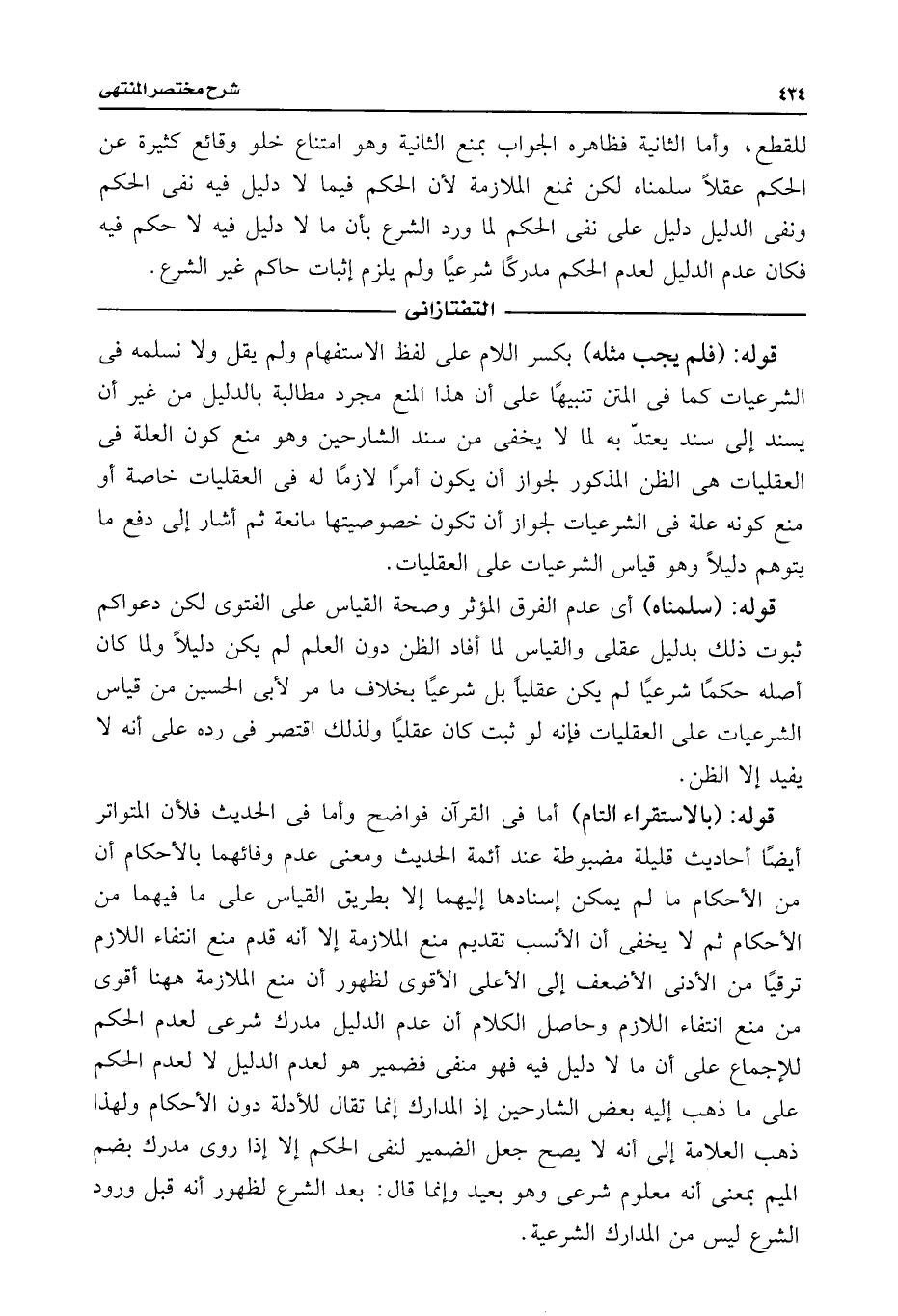 قوله: (بالاستقراء التام) أما فى القرآن فواضح وأما فى الحديث فلأن المتواتر أيضًا أحاديث قليلة مضبوطة عند أئمة الحديث ومعنى عدم وفائهما بالأحكام أن من الأحكام ما لم يمكن إسنادها إليهما إلا بطريق القياس على ما فيهما من الأحكام ثم لا يخفى أن الأنسب تقديم منع الملازمة إلا أنه قدم منع انتفاء اللازم ترقيًا من الأدنى الأضعف إلى الأعلى الأقوى لظهور أن منع الملازمة ههنا أقوى من منع انتفاء اللازم وحاصل الكلام أن عدم الدليل مدرك شرعى لعدم الحكم للإجماع على أن ما لا دليل فيه فهو منفى فضمير هو لعدم الدليل لا لعدم الحكم على ما ذهب إليه بعض الشارحين إذ المدارك إنما تقال للأدلة دون الأحكام ولهذا ذهب العلامة إلى أنه لا يصح جعل الضمير لنفى الحكم إلا إذا روى مدرك بضم الميم بمعنى أنه معلوم شرعى وهو بعيد وإنما قال: بعد الشرع لظهور أنه قبل ورود الشرع ليس من المدارك الشرعية.