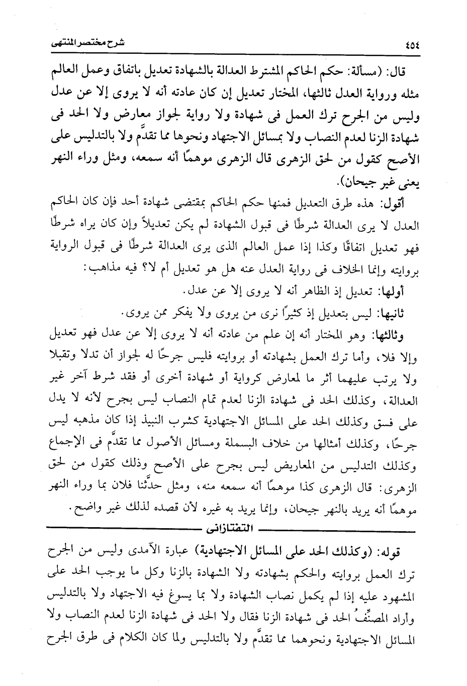 قوله: (وكذلك الحد على المسائل الاجتهادية) عبارة الآمدى وليس من الجرح ترك العمل بروايته والحكم بشهادته ولا الشهادة بالزنا وكل ما يوجب الحد على المشهود عليه إذا لم يكمل نصاب الشهادة ولا بما يسوغ فيه الاجتهاد ولا بالتدليس وأراد المصنِّفُ الحد فى شهادة الزنا فقال ولا الحد فى شهادة الزنا لعدم النصاب ولا المسائل الاجتهادية ونحوهما مما تقدَّم ولا بالتدليس ولما كان الكلام فى طرق الجرح