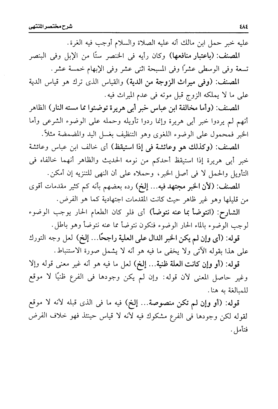 المصنف: (وأما مخالفة ابن عباس خبر أبى هريرة توضئوا مما مسته النار) الظاهر أنهم لم يردوا خبر أبى هريرة وإنما ردوا تأويله وحمله على الوضوء الشرعى وأما الخبر فمحمول على الوضوء اللغوى وهو التنظيف بغسل اليد والمضمضة مثلًا.