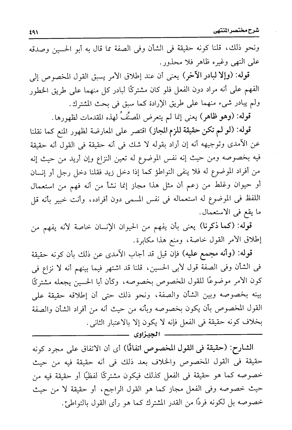 الشارح: (حقيقة فى القول المخصوص اتفاقًا) أى أن الاتفاق على مجرد كونه حقيقة فى القول المخصوص والخلاف بعد ذلك فى أنه حقيقة فيه من حيث خصوصه كما هو حقيقة فى الفعل كذلك فيكون مشتركًا لفظيًا أو حقيقة فيه من حيث خصوصه وفى الفعل مجاز كما هو القول الراجح، أو حقيقة لأن حيث خصوصه بل لكونه فردًا من القدر المشترك كما هو رأى القول بالتواطئ.