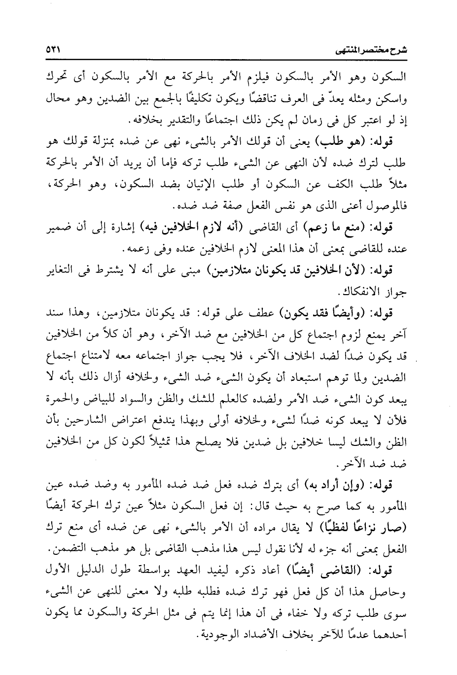 قوله: (وإن أراد به) أى بترك ضده فعل ضد ضده الأمور به وضد ضده عين المأمور به كما صرح به حيث قال: إن فعل السكون مثلًا عين ترك الحركة أيضًا (صار نزاعًا لفظيًا) لا يقال مراده أن الأمر بالشئ نهى عن ضده أى منع ترك الفعل بمعنى أنه جزء له لأنا نقول ليس هذا مذهب القاضى بل هو مذهب التضمن.