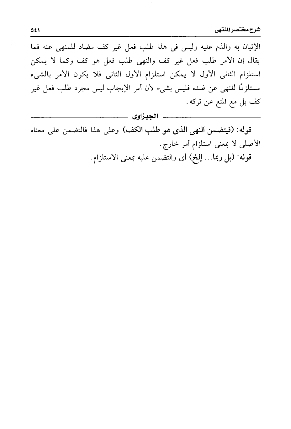 الإتيان به والذم عليه وليس فى هذا طلب فعل غير كف مضاد للمنهى عنه فما يقال إن الأمر طلب فعل غير كف والنهى طلب فعل هو كف وكما لا يمكن استلزام الثانى الأول لا يمكن استلزام الأول الثانى فلا يكون الأمر بالشئ مستلزمًا للنهى عن ضده فليس بشئ لأن أمر الإيجاب ليس مجرد طلب فعل غير كف بل مع المنع عن تركه.