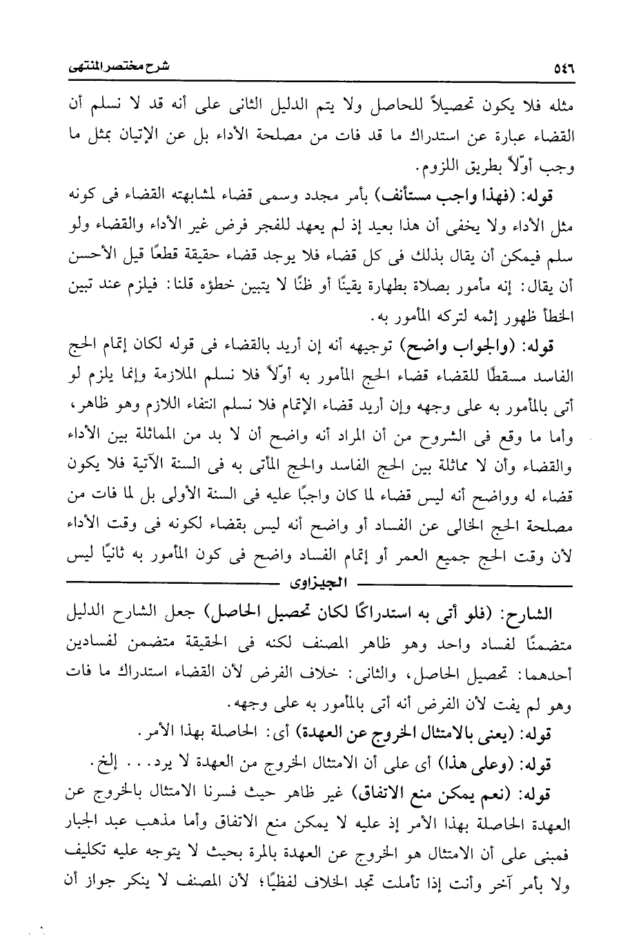 قوله: (والجواب واضح) توجيهه أنه إن أريد بالقضاء فى قوله لكان إتمام الحج الفاسد مسقطًا للقضاء قضاء الحج المأمور به أولًا فلا نسلم الملازمة وإنما يلزم لو أتى بالمأمور به على وجهه وإن أريد قضاء الإتمام فلا نسلم انتفاء اللازم وهو ظاهر، وأما ما وقع فى الشروح من أن المراد أنه واضح أن لا بد من المماثلة بين الأداء والقضاء وأن لا مماثلة بين الحج الفاسد والحج المأتى به فى السنة الآتية فلا يكون قضاء له وواضح أنه ليس قضاء لما كان واجبًا عليه فى السنة الأولى بل لما فات من مصلحة الحج الخالى عن الفساد أو واضح أنه ليس بقضاء لكونه فى وقت الأداء لأن وقت الحج جميع العمر أو إتمام الفساد واضح فى كون المأمور به ثانيًا ليس