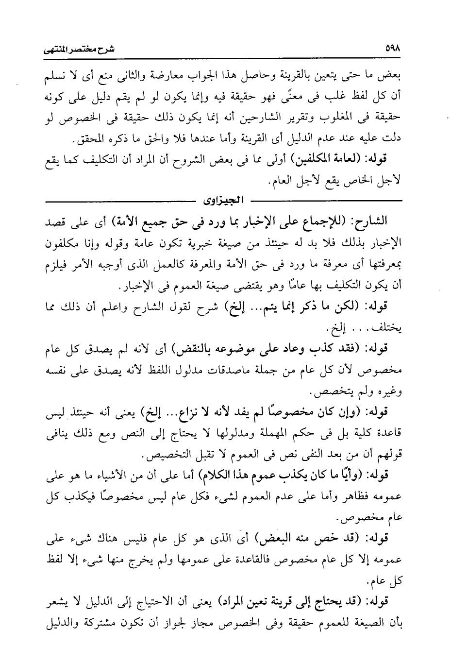 الشارح: (للإجماع على الإخبار بما ورد فى حق جميع الأمة) أى على قصد الإخبار بذلك فلابد له حينئذ من صيغة خبرية تكون عامة وقوله وإنا مكلفون بمعرفتها أى معرفة ما ورد فى حق الأمة والمعرفة كالعمل الذى أوجبه الأمر فيلزم أن يكون التكليف بها عامًا وهو يقتضى صيغة العموم فى الإخبار.