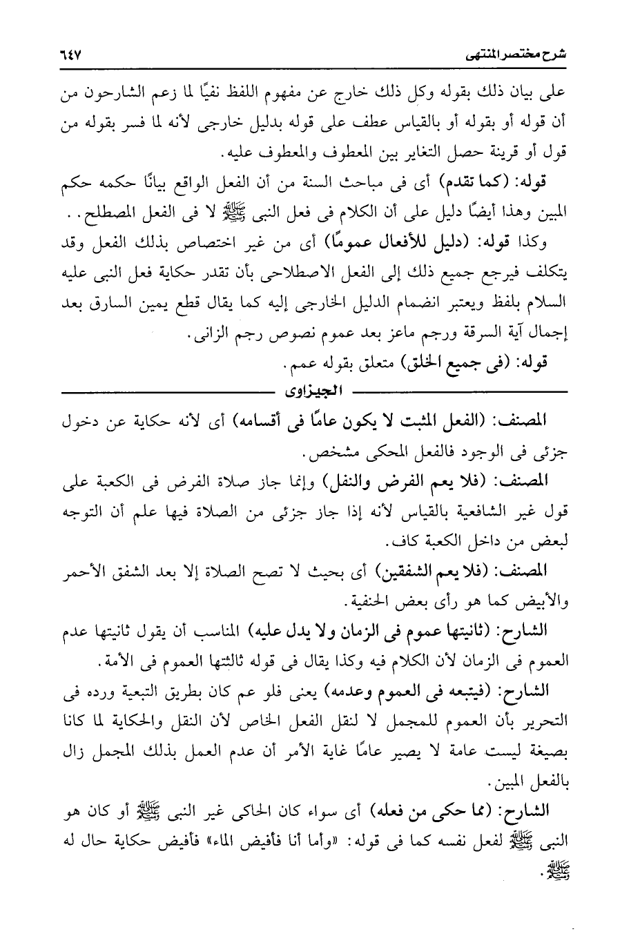 وكذا قوله: (دليل للأفعال عمومًا) أى من غير اختصاص بذلك الفعل وقد يتكلف فيرجع جميع ذلك إلى الفعل الاصطلاحى بأن تقدر حكاية فعل النبى عليه السلام بلفظ ويعتبر انضمام الدليل الخارجى إليه كما يقال قطع يمين السارق بعد إجمال آية السرقة ورجم ماعز بعد عموم نصوص رجم الزانى.