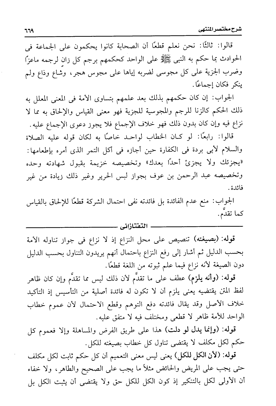 قالوا: ثالثًا: نحن نعلم قطعًا أن الصحابة كانوا يحكمون على الجماعة فى الحوادث بما حكم به النبى -صلى اللَّه عليه وسلم- على الواحد كحكمهم برجم كل زانٍ لرجمه ماعزًا وضرب الجزية على كل مجوسى لضربه إياها على مجوس هجر، وشاع وذاع ولم ينكر فكان إجماعًا.