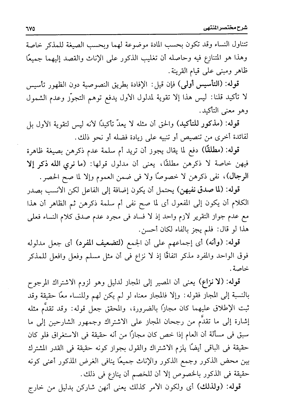 قوله: (لا نزاع) يعنى أن المصير إلى المجاز لدليل وهو لزوم الاشتراك المرجوح بالنسبة إلى المجاز فقوله: وإلا فالمجاز معناه لو لم يكن لهم وللنساء معًا حقيقة وقد ثبت الإطلاق عليهما كان مجازًا بالضرورة، والمحقق جعل قوله: وقد تقدَّم مثله إشارة إلى ما تقدَّم من رجحان المجاز على الاشتراك وجمهور الشارحين إلى ما سبق فى مسألة أن العام إذا خص كان مجازًا من أنه حقيقة فى الاستغراق فلو كان حقيقة فى الباقى أيضًا يلزم الاشتراك والقول بجواز كونه حقيقة فى القدر المشترك بين محض الذكور وجمع الذكور والإناث جميعًا ينافى الغرض المذكور أعنى كونه حقيقة فى الذكور بالخصوص إلا أن للخصم أن ينازع فى ذلك.