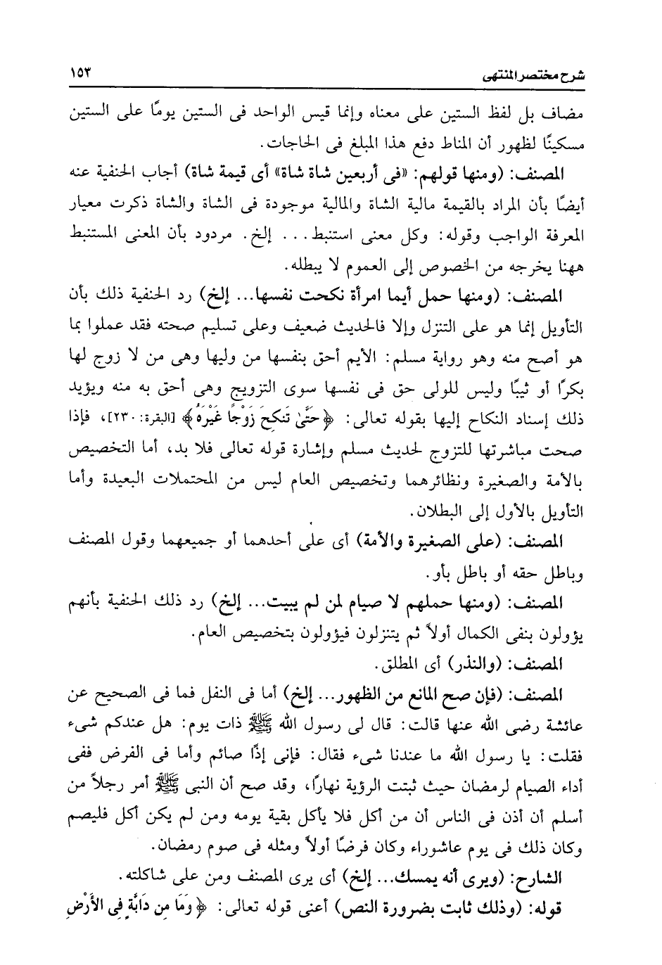 المصنف: (ومنها حملهم لا صيام لمن لم يبيت. . . إلخ) رد ذلك الحنفية بأنهم يؤولون بنفى الكمال أولًا ثم يتنزلون فيؤولون بتخصيص العام.