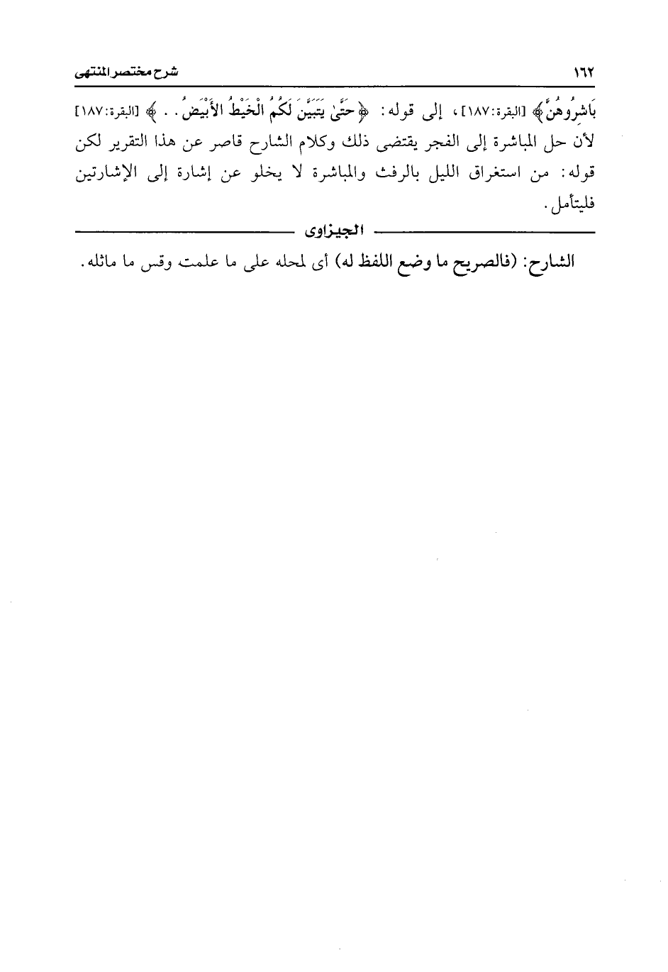 بَاشِرُوهُنَّ} [البقرة: ١٨٧]، إلى قوله: {حَتَّى يَتَبَيَّنَ لَكُمُ الْخَيْطُ الْأَبْيَضُ. .} [البقرة: ١٨٧] لأن حل المباشرة إلى الفجر يقتضى ذلك وكلام الشارح قاصر عن هذا التقرير لكن قوله: من استغراق الليل بالرفث والمباشرة لا يخلو عن إشارة إلى الإشارتين فليتأمل.