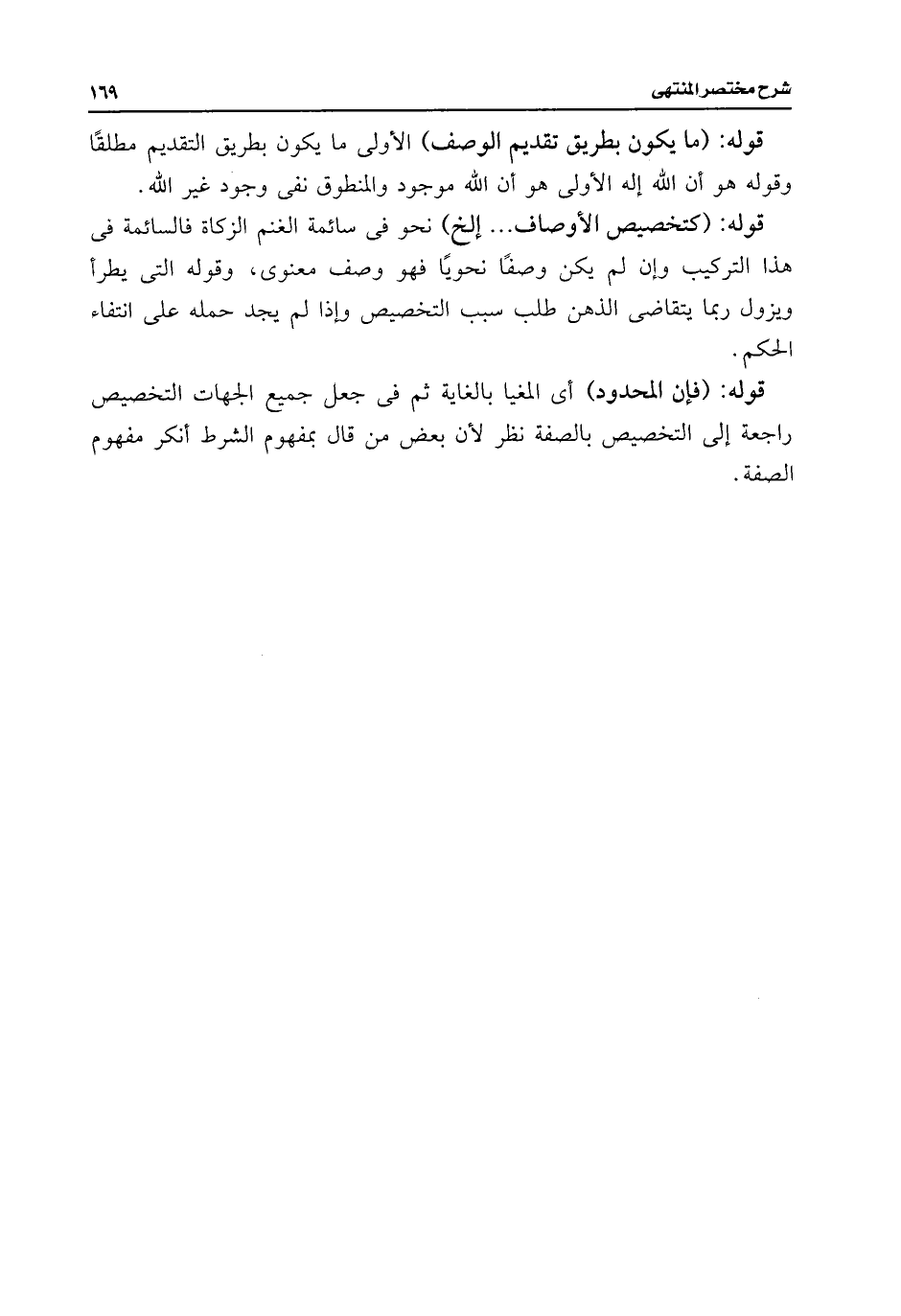 قوله: (فإن المحدود) أى المغيا بالغاية ثم فى جعل جميع الجهات التخصيص راجعة إلى التخصيص بالصفة نظر لأن بعض من قال بمفهوم الشرط أنكر مفهوم الصفة.