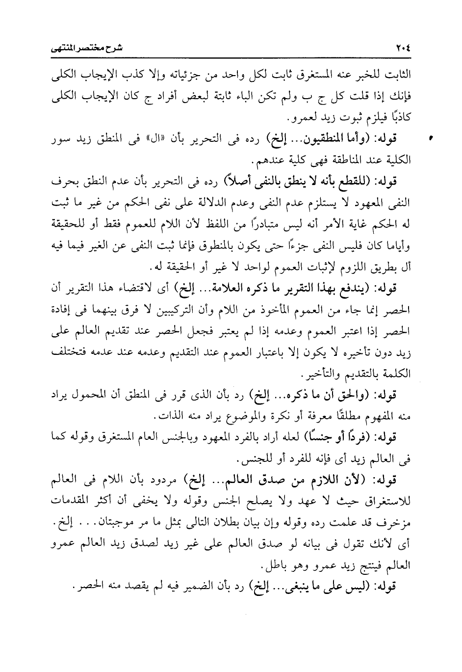 قوله: (وأما المنطقيون. . . إلخ) رده فى التحرير بأن "ال" فى المنطق زيد سور الكلية عند المناطقة فهى كلية عندهم.