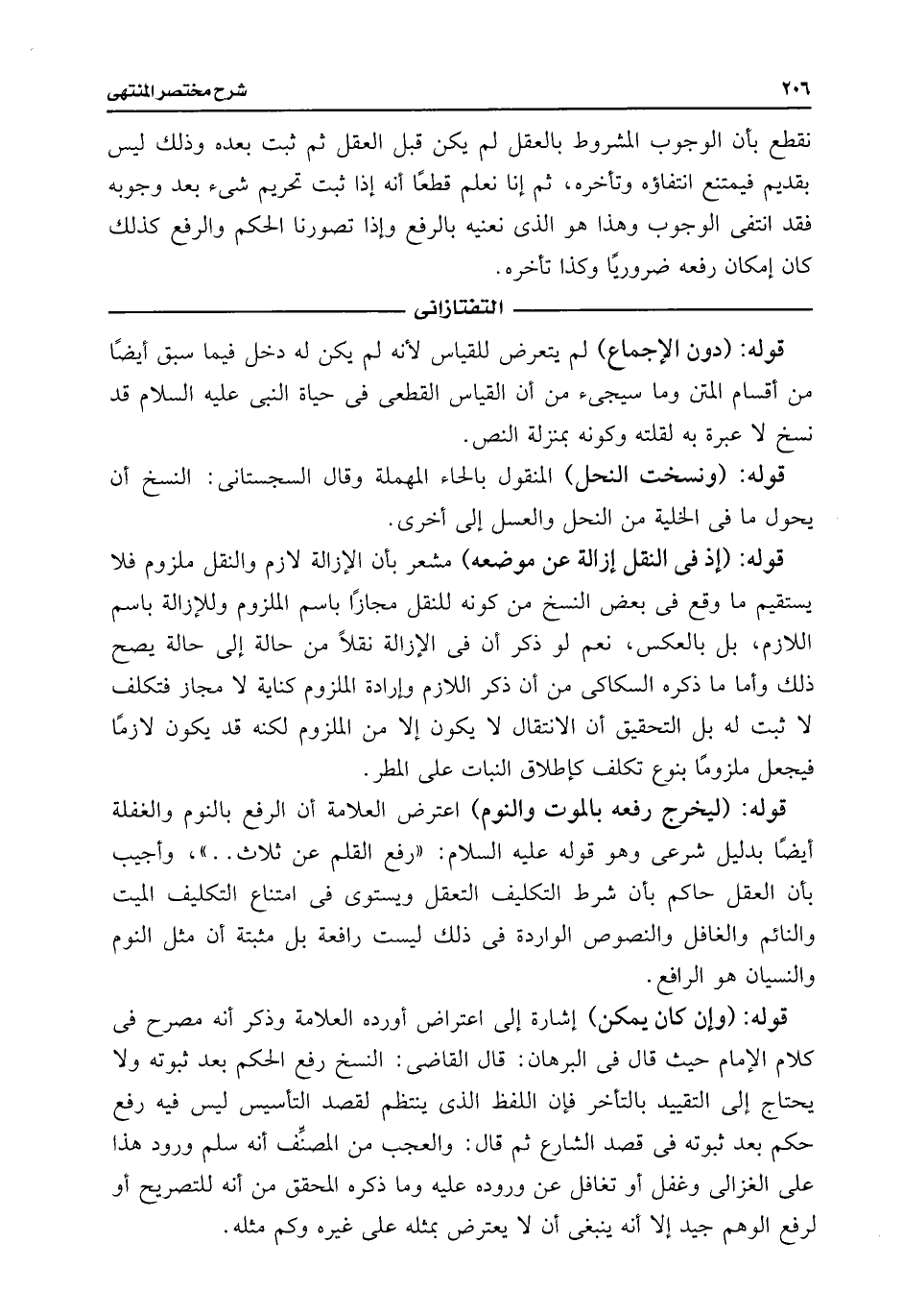 قوله: (ليخرج رفعه بالموت والنوم) اعترض العلامة أن الرفع بالنوم والغفلة أيضًا بدليل شرعى وهو قوله عليه السلام: "رفع القلم عن ثلاث. . "، وأجيب بأن العقل حاكم بأن شرط التكليف التعقل ويستوى فى امتناع التكليف الميت والنائم والغافل والنصوص الواردة فى ذلك ليست رافعة بل مثبتة أن مثل النوم والنسيان هو الرافع.