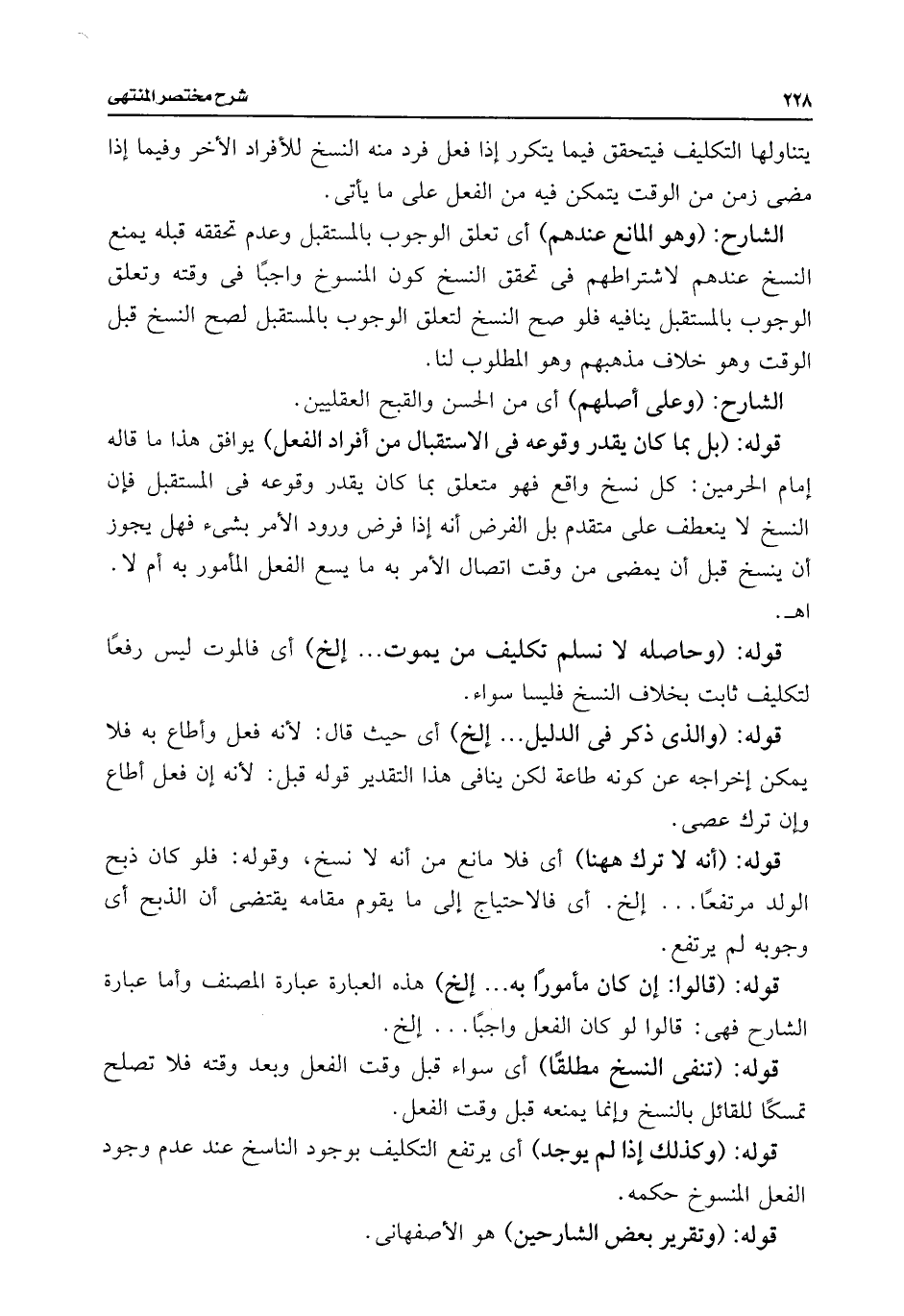 قوله: (بل بما كان يقدر وقوعه فى الاستقبال من أفراد الفعل) يوافق هذا ما قاله إمام الحرمين: كل نسخ واقع فهو متعلق بما كان يقدر وقوعه فى المستقبل فإن النسخ لا ينعطف على متقدم بل الفرض أنه إذا فرض ورود الأمر بشئ فهل يجوز أن ينسخ قبل أن يمضى من وقت اتصال الأمر به ما يسع الفعل المأمور به أم لا. اهـ.