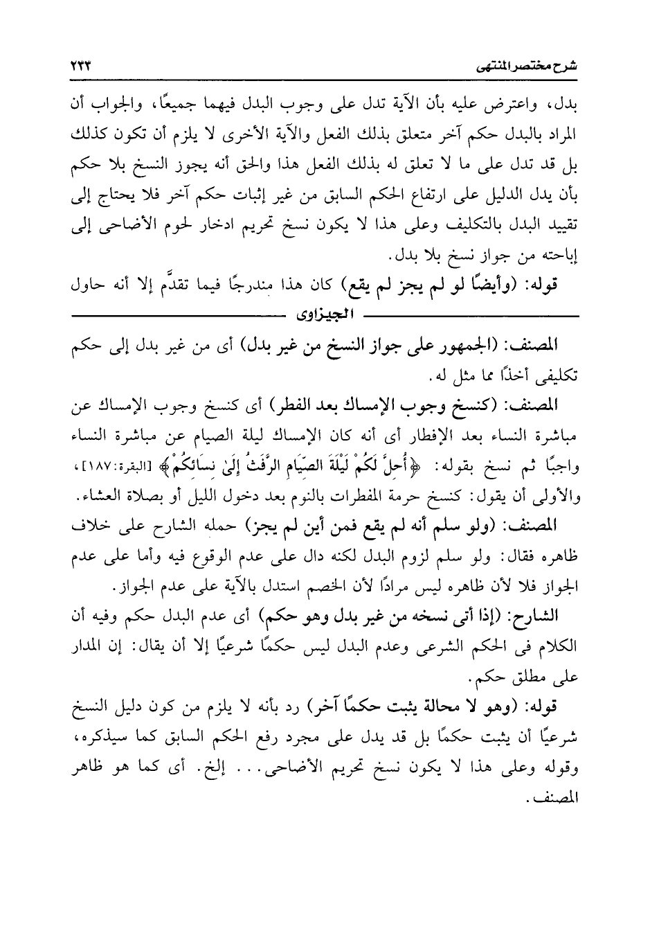الشارح: (إذا أتى نسخه من غير بدل وهو حكم) أى عدم البدل حكم وفيه أن الكلام فى الحكم الشرعى وعدم البدل ليس حكمًا شرعيًا إلا أن يقال: إن المدار على مطلق حكم.