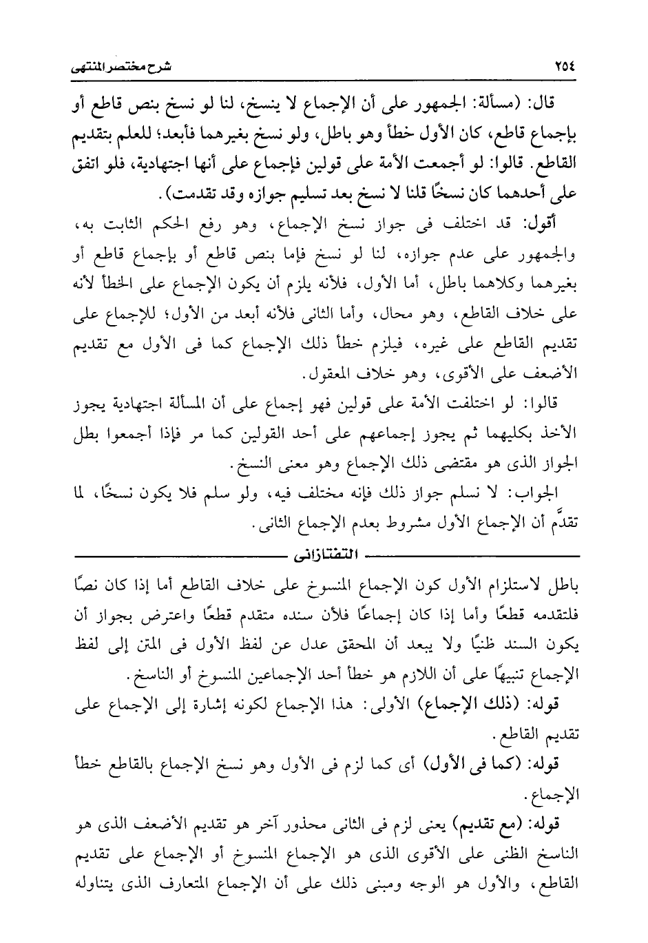 أقول: قد اختلف فى جواز نسخ الإجماع، وهو رفع الحكم الثابت به، والجمهور على عدم جوازه، لنا لو نسخ فإما بنص قاطع أو بإجماع قاطع أو بغيرهما وكلاهما باطل، أما الأول، فلأنه يلزم أن يكون الإجماع على الخطأ لأنه على خلاف القاطع، وهو محال، وأما الثانى فلأنه أبعد من الأول؛ للإجماع على تقديم القاطع على غيره، فيلزم خطأ ذلك الإجماع كما فى الأول مع تقديم الأضعف على الأقوى، وهو خلاف المعقول.