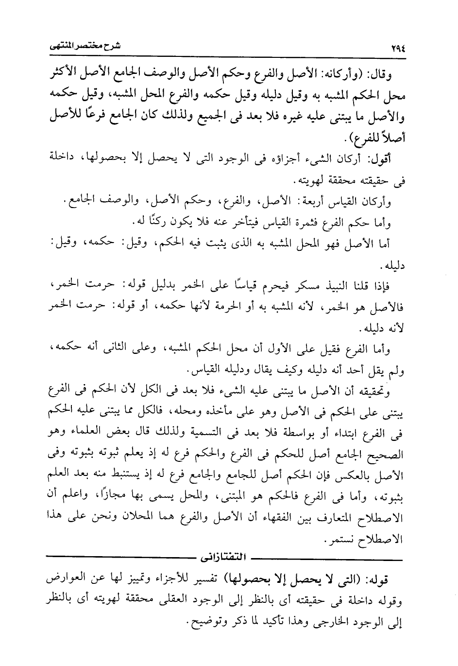 وتحقيقه أن الأصل ما يبتنى عليه الشئ فلا بعد فى الكل لأن الحكم فى الفرع يبتنى على الحكم فى الأصل وهو على مأخذه ومحله، فالكل مما يبتنى عليه الحكم فى الفرع ابتداء أو بواسطة فلا بعد فى التسمية ولذلك قال بعض العلماء وهو الصحيح الجامع أصل للحكم فى الفرع والحكم فرع له إذ يعلم ثبوته بثبوته وفى الأصل بالعكس فإن الحكم أصل للجامع والجامع فرع له إذ يستنبط منه بعد العلم بثبوته، وأما فى الفرع فالحكم هو المبتنى، والمحل يسمى بها مجازًا، واعلم أن الاصطلاح المتعارف بين الفقهاء أن الأصل والفرع هما المحلان ونحن على هذا الاصطلاح نستمر.