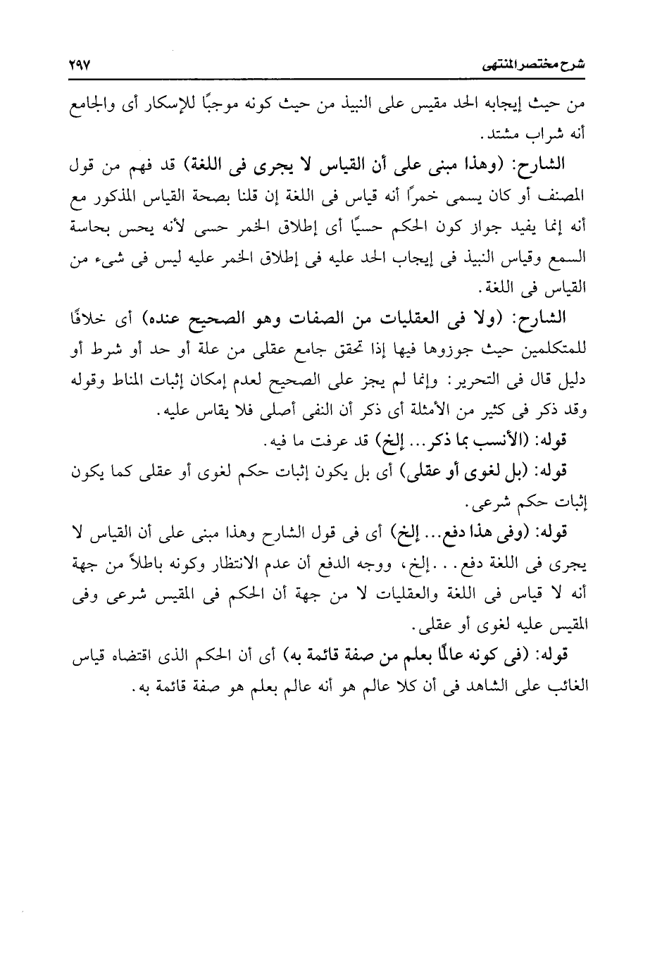 الشارح: (وهذا مبنى على أن القياس لا يجرى فى اللغة) قد فهم من قول المصنف أو كان يسمى خمرًا أنه قياس فى اللغة إن قلنا بصحة القياس المذكور مع أنه إنما يفيد جواز كون الحكم حسيًا أى إطلاق الخمر حسى لأنه يحس بحاسة السمع وقياس النبيذ فى إيجاب الحد عليه فى إطلاق الخمر عليه ليس فى شئ من القياس فى اللغة.