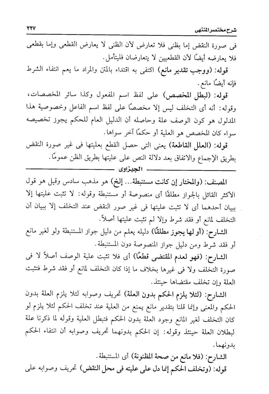 الشارح: (لئلا يلزم الحكم بدون العلة) تحريف وصوابه لئلا يلزم العلة بدون الحكم والمعنى وإنما قلنا بتقدير مانع يمنع من العلية عند تخلف الحكم لئلا يلزم لو كان التخلف لغير المانع وجود العلة بدون الحكم فتبطل العلية وقوله لما ذكرنا علة لبطلان العلة حينئذ وقوله: إن الحكم بدونهما تحريف وصوابه أن انتفاء الحكم بدونهما.