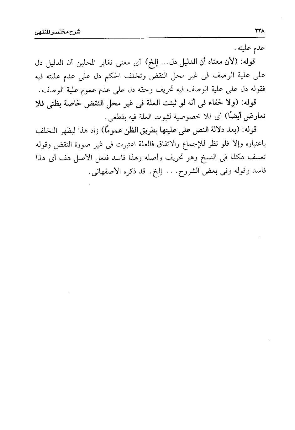 قوله: (بعد دلالة النص على عليتها بطريق الظن عمومًا) زاد هذا ليظهر التخلف باعتباره وإلا فلو نظر للإجماع والاتفاق فالعلة اعتبرت فى غير صورة النقض وقوله تعسف هكذا فى النسخ وهو تحريف وأصله وهذا فاسد فلعل الأصل هف أى هذا فاسد وقوله وفى بعض الشروح. . . إلخ. قد ذكره الأصفهانى.