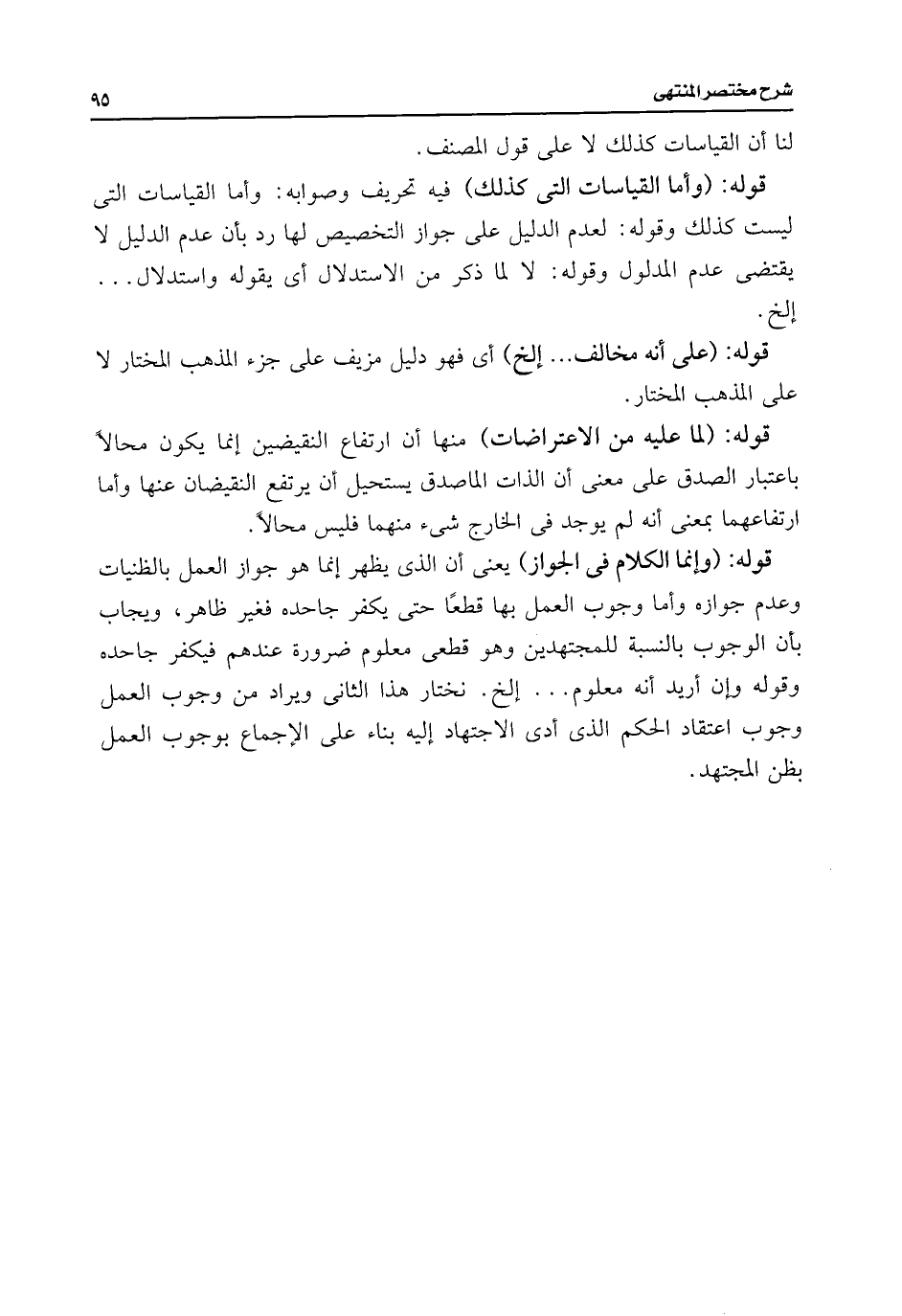 قوله: (وأما القياسات التى كذلك) فيه تحريف وصوابه: وأما القياسات التى ليست كذلك وقوله: لعدم الدليل على جواز التخصيص لها رد بأن عدم الدليل لا يقتضى عدم المدلول وقوله: لا لما ذكر من الاستدلال أى يقوله واستدلال. . . إلخ.