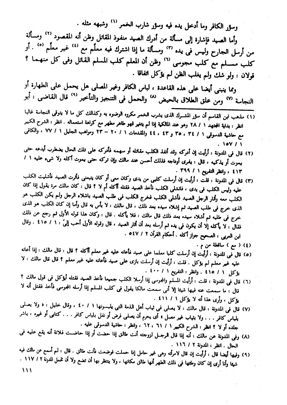 وأما الصيد فإشارة إلي مسألة من أدرك الصيد منفوذ المقاتل وظن أنه المقصود ومسألة من أرسل الجارح وليس في يده ومسألة ما إذا اشترك فيه معلم مع غير معلم. أو كلب مسلم مع كلب مجوسي وظن أن المعلم كلب المسلم القاتل وفي كل منهما؟ قولان: ولو شك ولم يغلب الظن لم يؤكل اتفاقا.