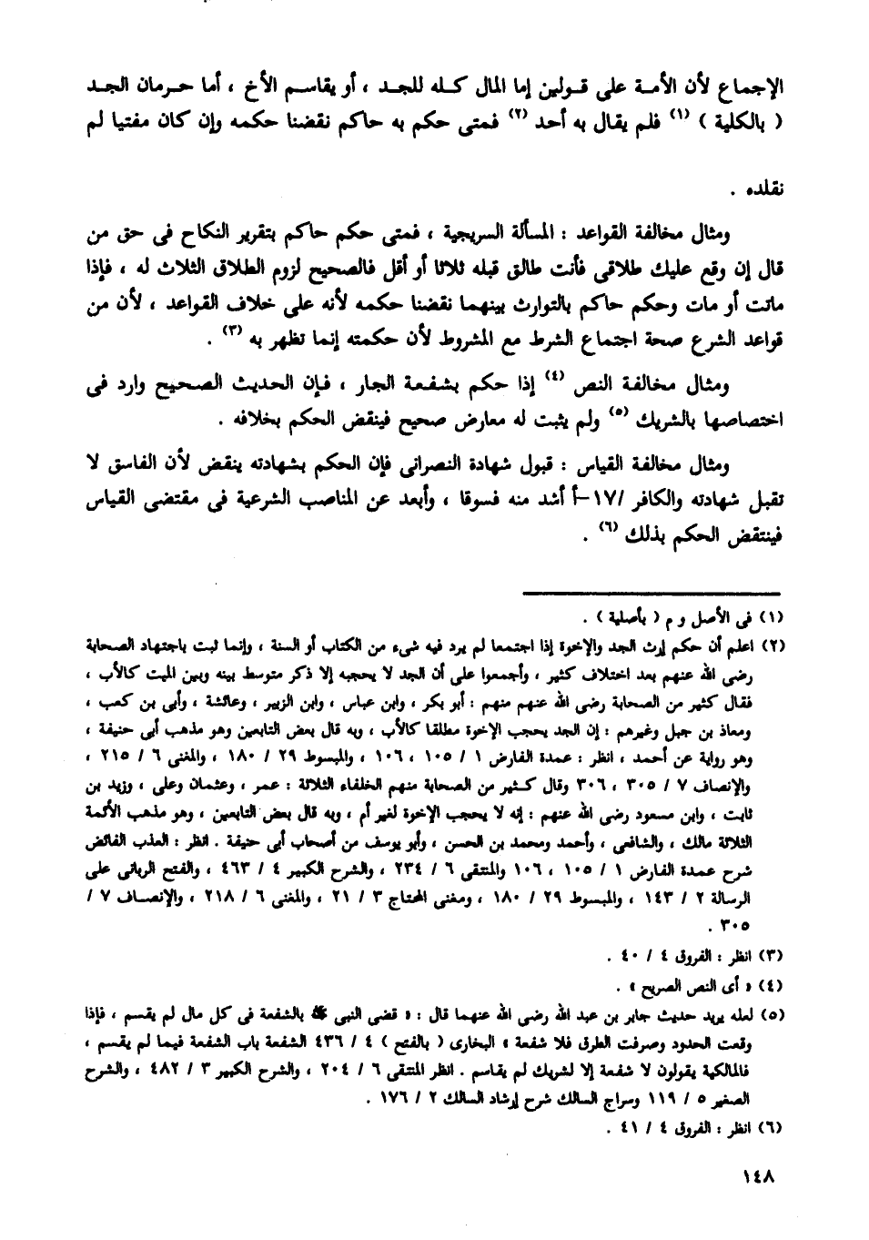 ومثال مخالفة النص إذا حكم بشفعة الجار، فإن الحديث الصحيح وارد في اختصاصها بالشريك ولم يثبت له معارض صحيح فينقض الحكم بخلافه.