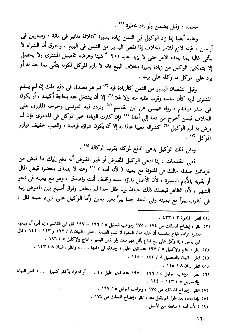 وعليه أيضا إذا زاد الوكيل في الثمن زيادة يسيرة كثلاثة دنانير في مائة، ودينارين في أربعين، فإنه لازم للأمر بخلاف إذا نقص اليسير من الثمن في البيع، والفرق أن الشراء لا يتأتى غالباً بما يحده الأمر حتى لا يزيد عليه /20 - أشيئاً وغرضه تحصيل المشترى ولا يحصل إلا بتمكين الوكيل من زيادة يسيرة بخلاف البيع فإنه لا يلزم الموكل لكونه يتأتى بما حد له أو يرد علي الوکل ما وکله علي بيعه.