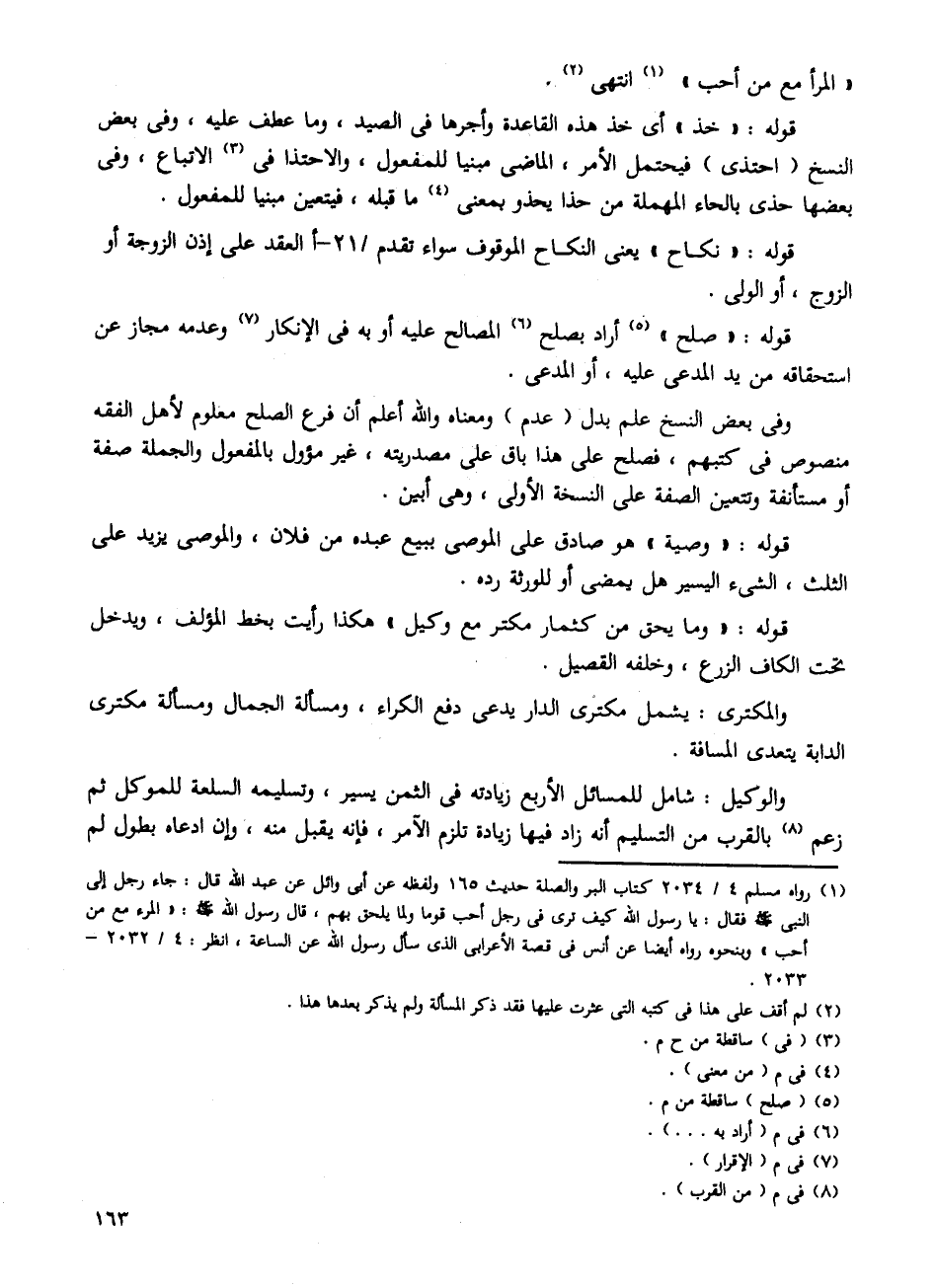 وفي بعض النسخ علم بدل (عدم) ومعناه والله أعلم أن فرع الصلح معلوم لأهل الفقه منصوص في كتبهم، فصلح على هذا باق على مصدريته، غير مؤول بالمفعول والجملة صفة أو مستأنفة وتتعين الصفة على النسخة الأولى، وهي أبين.
