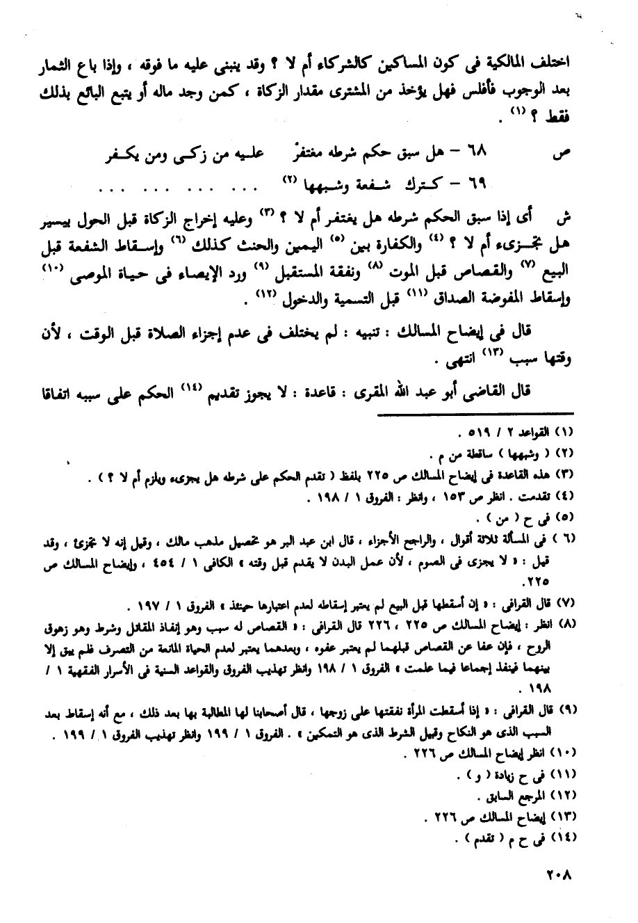 قال القاضى أبو عبد الله المقرى: قاعدة: لا يجوز تقديم الحكم على سببه اتفاقا