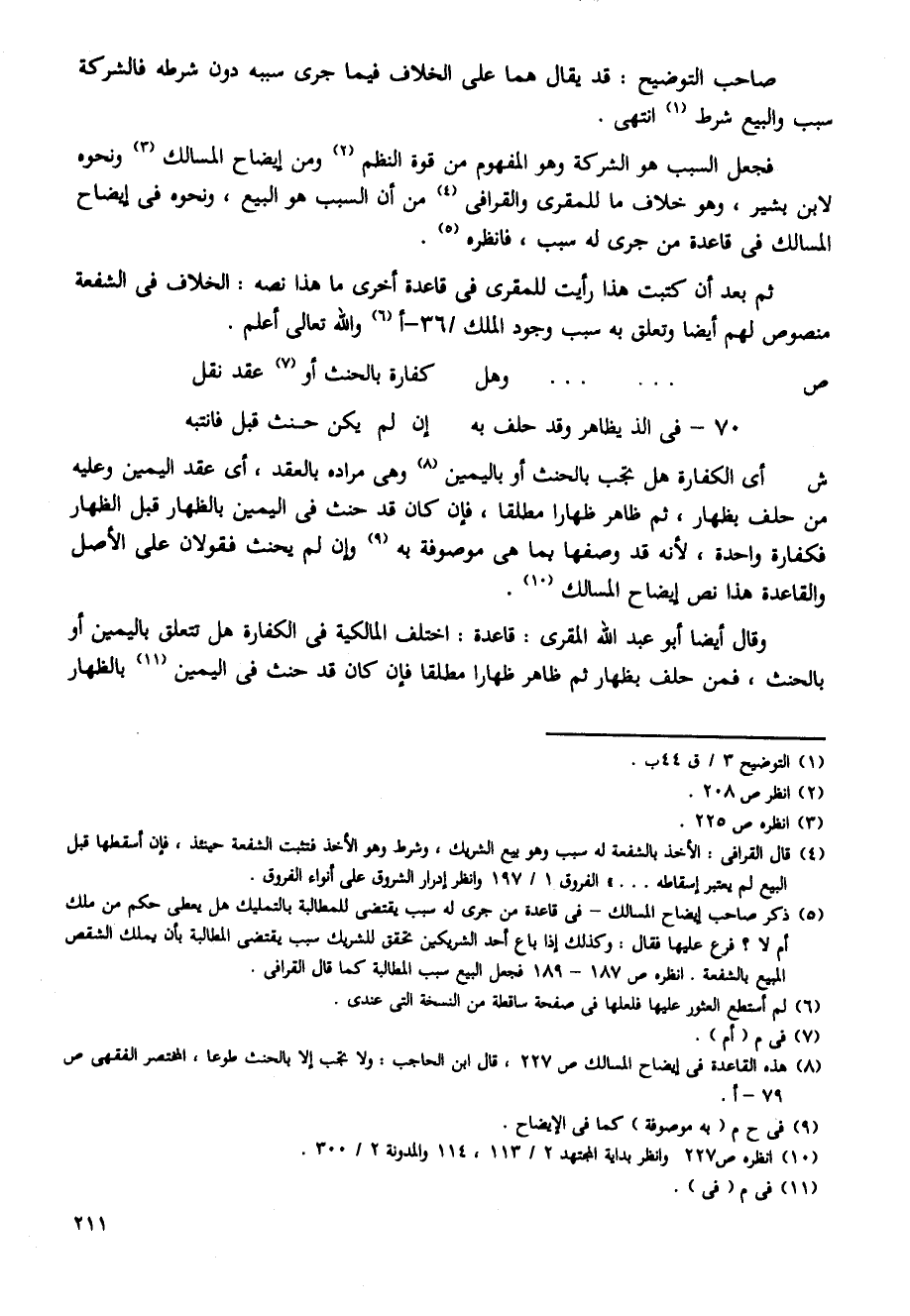 فجعل السبب هو الشركة وهو المفهوم من قوة النظم ومن إيضاح المسالك ونحوه لابن بشير، وهو خلاف ما للمقرى والقرافى من أن السبب هو البيع، ونحوه فى إيضاح المسالك فى قاعدة من جرى له سبب، فانظره.