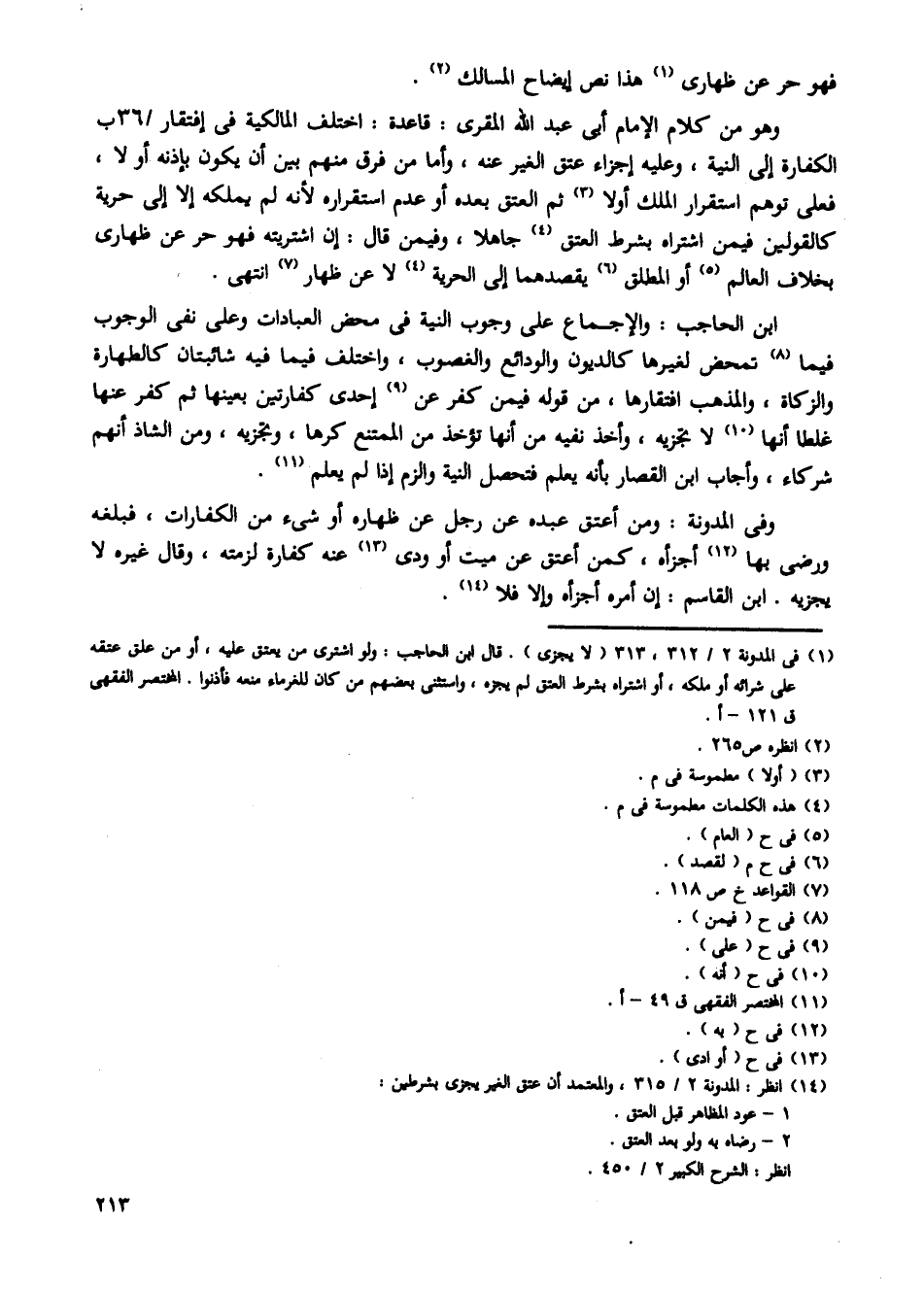 وهو من كلام الإمام أبى عبد الله المقرى: قاعدة: اختلف المالكية فى إفتقار/ 36 ب الكفارة إلى النية، وعليه إجزاء عتق الغير عنه، وأما من فرق منهم بين أن يكون بإذنه أو لا، فعلى توهم استقرار الملك أولا ثم العتق بعده أو عدم استقراره لأنه لم يملكه إلا إلى حرية كالقولين فيمن اشتراه بشرط العتق جاهلا، وفيمن قال: إن اشتريته فهو حر عن ظهارى بخلاف العالم أو المطلق يقصدهما إلى الحرية لا عن ظهار انتهى.