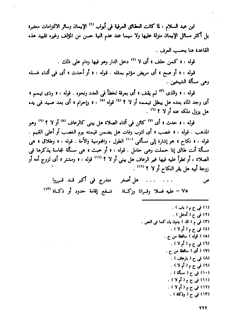 ابن عبد السلام: لما كانت الحقائق العرفية فى أبواب الإيمان وسائر الالتزامات معتبرة بل أكثر مسائل الإيمان منزلة عليها ولاسيما عند عدم النية حسن من المؤلف وغيره تقييد هذه القاعدة هنا بحسب العرف.