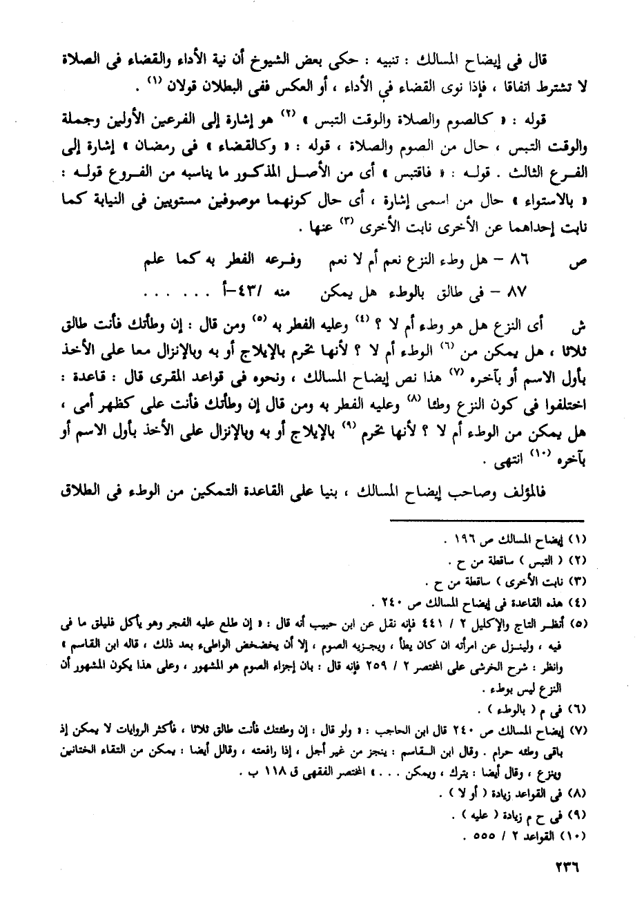 أى النزع هل هو وطء أم لا؟ وعليه الفطر به ومن قال: إن وطأتك فأنت طالق ثلاثًَا، هل يمكن من الوطء أم لا؟ لأنها تحرم بالإيلاج أو به وبالإنزال معًا على الأخذ بأول الاسم أو بآخره هذا نص إيضاح المسالك، ونحوه فى قواعد المقري قال: قاعدة: اختلفوا فى كون النزع وطئا وعليه الفطر به ومن قال إن وطأتك فأنت على كظهر أمي، هل يمكن من الوطء أم لا؟ لأنها تحرم بالإيلاج أو به وبالإنزال على الأخذ بأول الاسم أو بآخره انتهى.