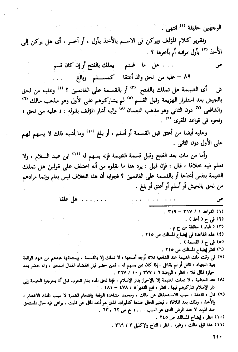 ... هل ما غنم ... يملك بالفتح أو إن كان قسم