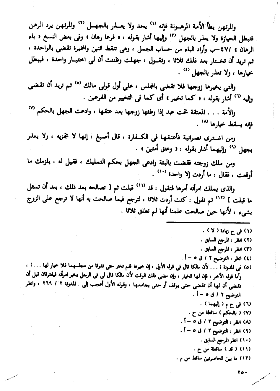 والمرتهن يطأ الأمة المرهونة فإنه يحد ولا يعذر بالجهل والمرتهن يرد الرهن فتبطل الحيازة ولا يعذر بالجهل وإليها أشار بقوله: "فرعا رهان" وفى بعض النسخ "باء الرهان" /47 - ب وأراد الباء من حساب الجمل، وهى تنقط اثنين والمخيرة تقضى بالواحدة، ثم تريد أن تختار بعد ذلك ثلاثًا، وتقول: جهلت وظننت أن لى اختيار واحدة، فيبطل خيارها، ولا تعذر بالجهل.