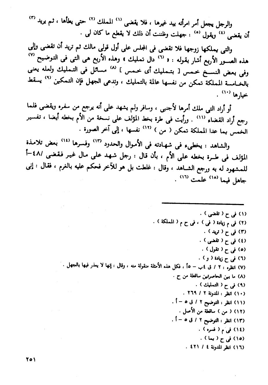 أو أراد التى ملك أمرها لأجنبى، وسافر ولم يشهد على أنه يرجع من سفره ويقضي فلما رجع أراد القضاء. ورأيت فى طرة بخط المؤلف على نسخة من الأم بخطه أيضا، تفسير الخمس بما عدا المملكة تمكن (من) نفسها، إلى آخر الصورة.