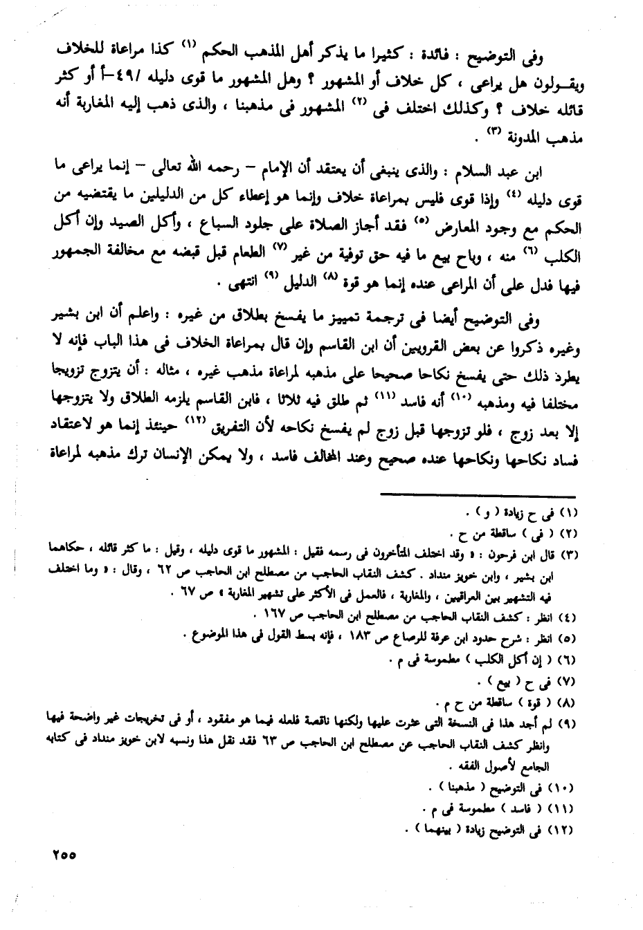 ابن عبد السلام: والذى ينبغى أن يعتقد أن الإمام - رحمه الله تعالى - إنما يراعى ما قوى دليله وإذا قوى فليس بمراعاة خلاف وإنما هو إعطاء لك من الدليلين ما يقتضيه من الحكم مع وجود المعارض فقد أجاز الصلاة على جلود السباع، وأكل الصيد وإن أكل الكلب منه، وباح بيع ما فيه حق توفية من غير الطعام قبل قبضه مع مخالفة الجمهور فيها فدل على أن المراعى عنده إنما هو قوة الدليل انتهى.