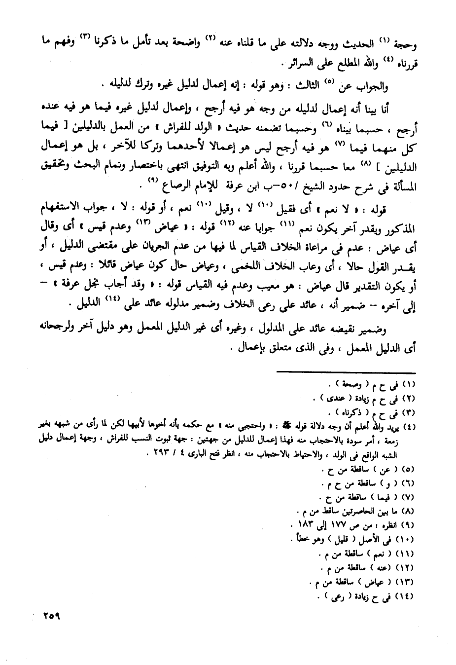 أنا بينا أنه إعمال لدليله من وجه هو فيه أرجح، وإعمال لدليل غيره فيما هو فيه عنده أرجح، حسبما بيناه وحسبما تضمنه حديث "الولد للفراش" من العمل بالدليلين [فيما كل منهما فيما هو فيه أرجح ليس هو إعمالا لأحدهما وتركا للآخر، بل هو إعمال الدليلين] معا حسبما قررنا، والله أعلم وبه التوفيق انتهى باختصار وتمام البحث وتحقيق المسألة فى شرح حدود الشيخ /50 - ب ابن عرفة للإمام الرصاع.