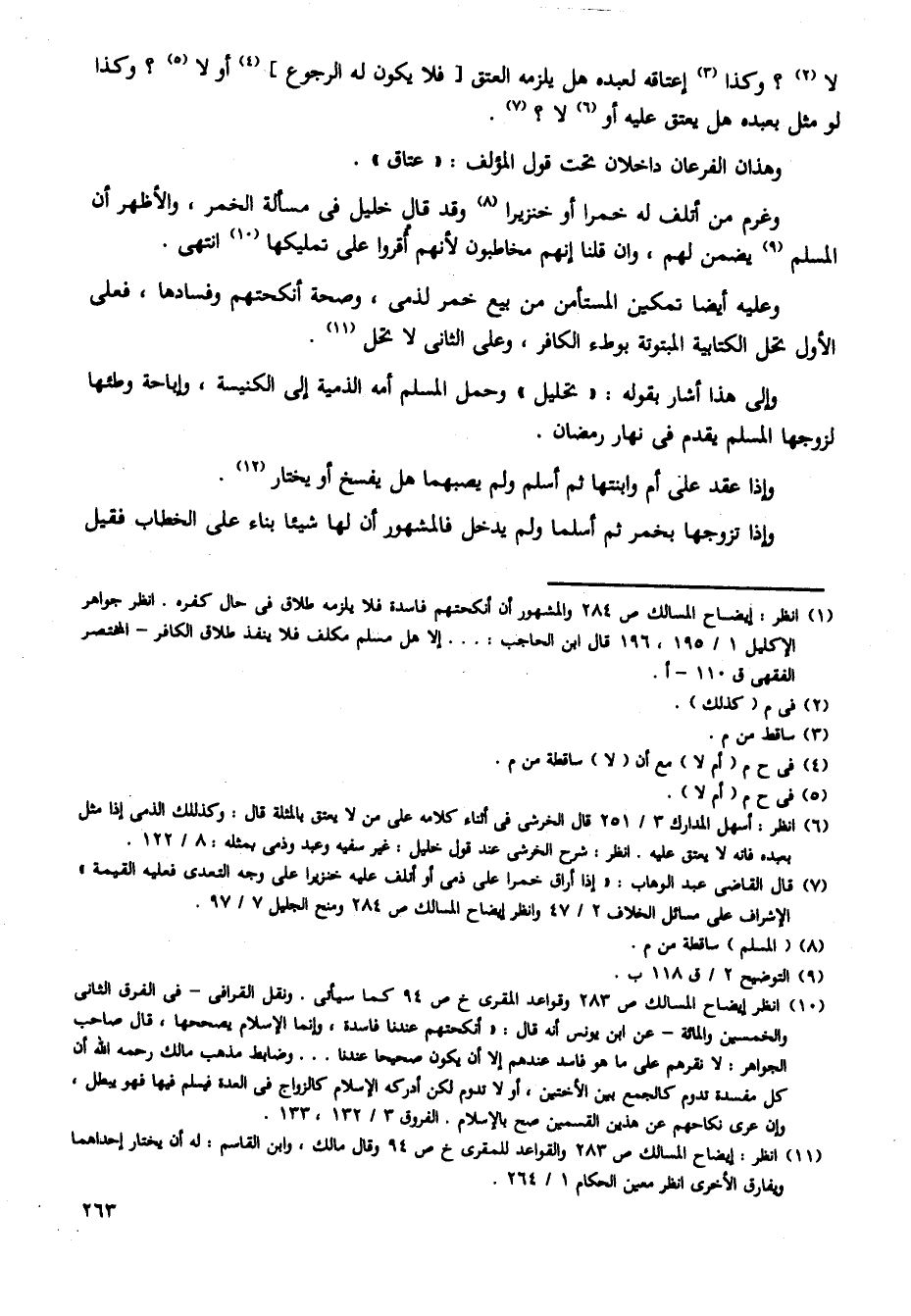 وعليه أيضا تمكين المستأمن من بيع خمر لذمى، وصحة أنكحتهم وفسادها، فعلى الأول تحل الكتابية المبتوتة بوطء الكافر، وعلى الثانى لا تحل.
