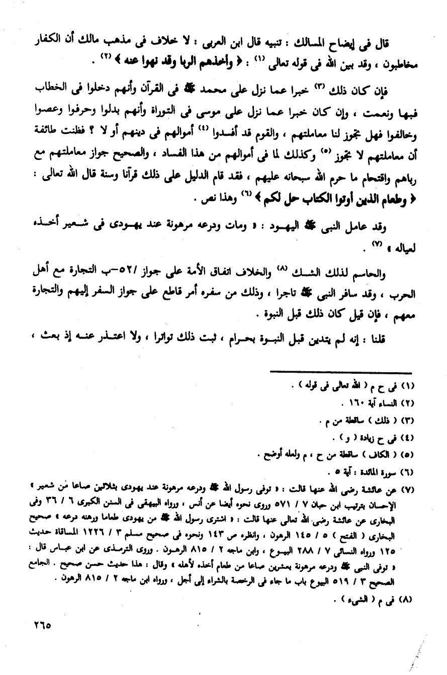 وقد عامل النبى - صلى الله عليه وسلم - اليهود: "ومات ودرعه مرهونة عند يهودى فى شعير أخذه لعياله".