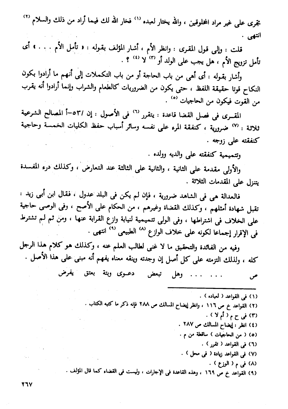 المقرى فى فصل القضا قاعدة: يتقرر فى الأصول: إن /53 - أالمصالح الشرعية ثلاثة: ضرورية، كنفقة المرء على نفسه وسائر أسباب حفظ الكليات الخمسة وحاجية كنفقته على زوجه.