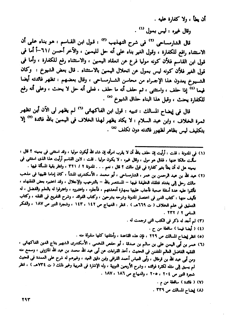 قال الشارمساحى فى شرح التهذيب: قول ابن القاسم: هو بناء على أن الاستثناء رافع للكفارة، وقول الغير بناء على أنه حل لليمين، والآخر أحسن /61 - أأما فى قول ابن القاسم فلأن كونه موليا فرع عن انعقاد اليمين، والاستثناء رفع للكفارة، وأما فى قول الغري فلأن كونه موليا فرع عن انحلال اليمين بالاستثناء. قال بعض الشيوخ: وكان الشيوخ يعدون هذا الإجراء من محاسن الشارمساحى، وقال بعضهم: تظهر فائدته أيضا فيما إذا حلف، واستثنى، ثم حلف أنه ما حلف، فعلى أنه حل لا يحنث، وعلى أنه رفع للكفارة يحنث، وقبل هذا البناء حذاق الشيوخ.