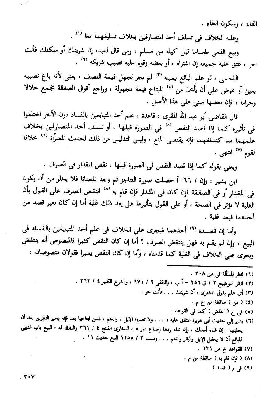ابن بشير: وإن /66 - أحصلت صورة التناجز ثم وجد نقصانا فلا يخلو من أن يكون فى المقدار أو فى الصفقة فإن كان فى المقدار فإن قام به انتقض الصرف على القول بأن الغلبة لا تؤثر فى الصحة، أو على القول بتأثيرها هل يعد ذلك غلبة أما إن كان بغير قصد من أحدهما فيعد غلبة.