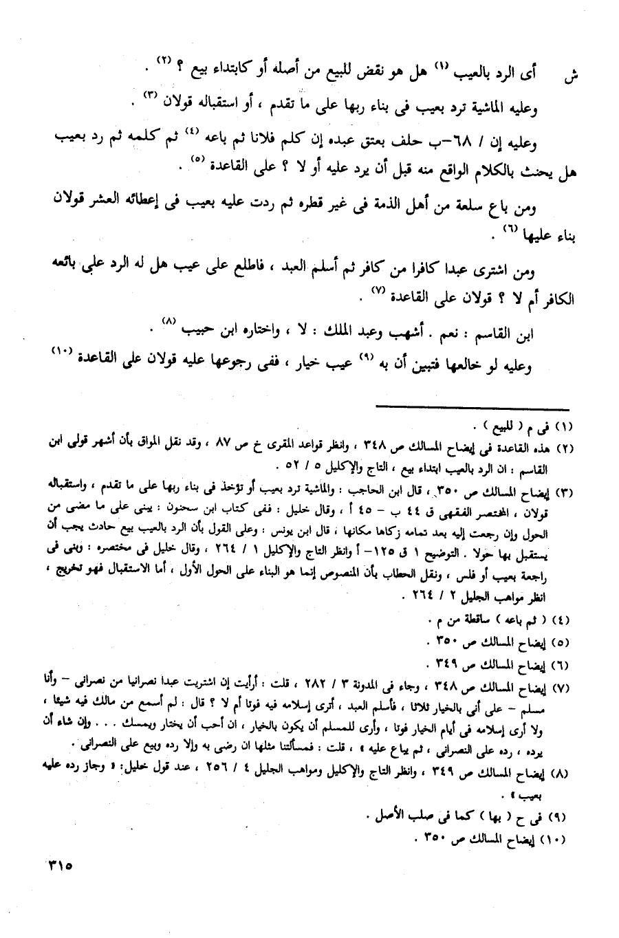 ومن اشترى عبدا كافرا من كافر ثم أسلم العبد، فاطلع على عيب هل له الرد على بائعه الكافر أم لا؟ قولان على القاعدة.
