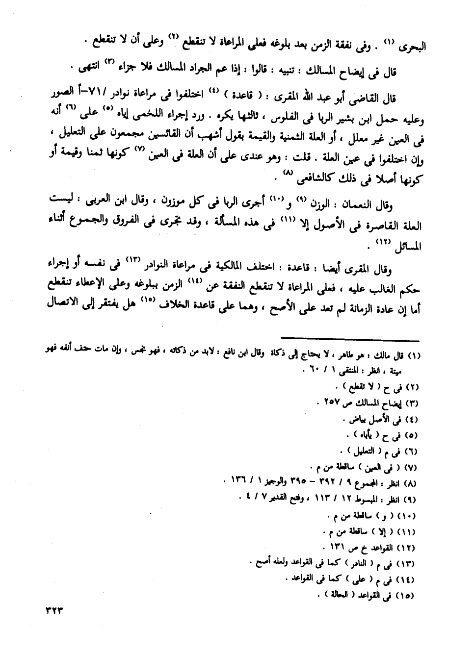 قال القاضى أبو عبد الله المقرى: (قاعدة) اختلفوا فى مراعاة نوادر /71 - أالصور وعليه حمل ابن بشير الربا فى الفلوس، ثالثها يكره. ورد إجرء اللخمى إياه على أنه فى العين غير معلل، أو العلة الثمنية والقيمة بقول أشهب أن القائسين مجمعون على التعليل، وإن اختلفوا فى عين العلة. قلت: وهو عندى على أن العلة فى العين كونها ثمنا وقيمة أو كونها أصلا قى ذلك كالشافعى.