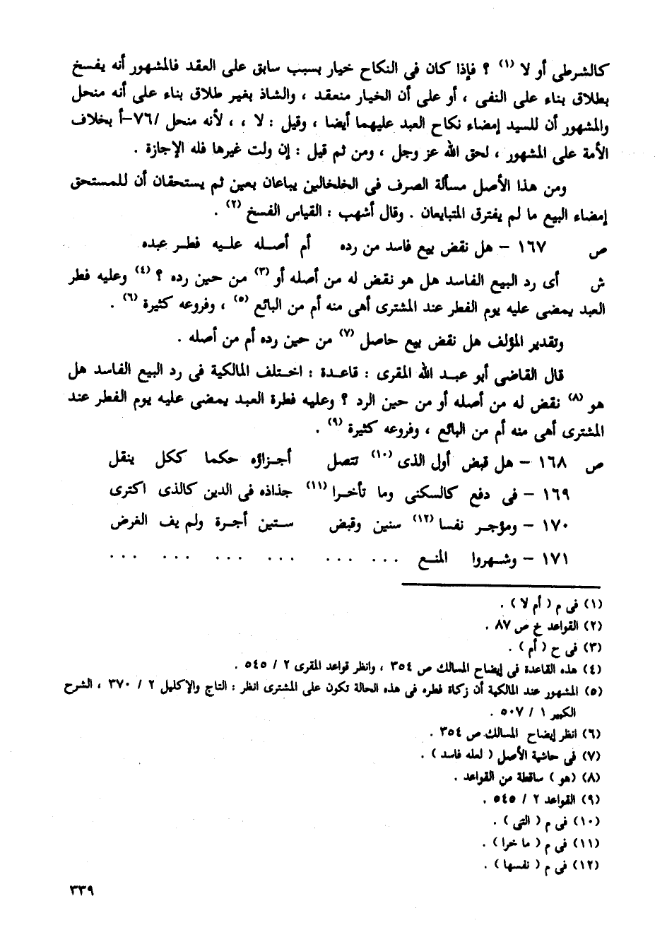 قال القاضى أبو عبد الله المقرى: قاعدة: اختلف المالكية فى رد البيع الفاسد هل هو نقض له من أصله أو من حين الرد؟ وعليه فطرة العبد يمضى عليه يوم الفطر عند المشترى أهى منه أم من البائع، وفروعه كثيرة.