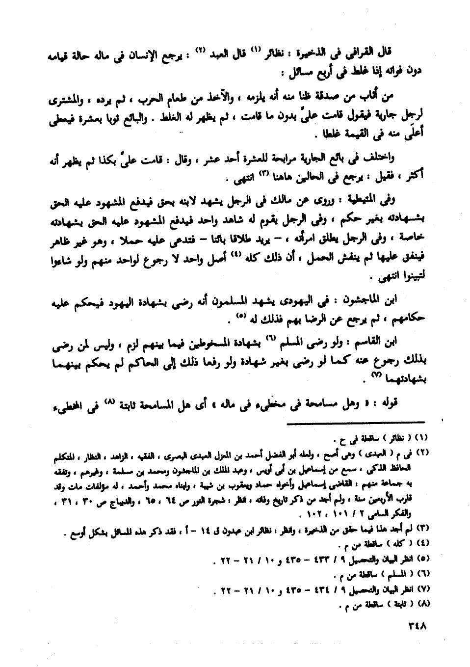 قال القرافي في الذخيرة: نظائر قال العبد: يرجع الإنسان فى ماله حالة قيامه دون فواته إذا غلط فى أربع مسائل: