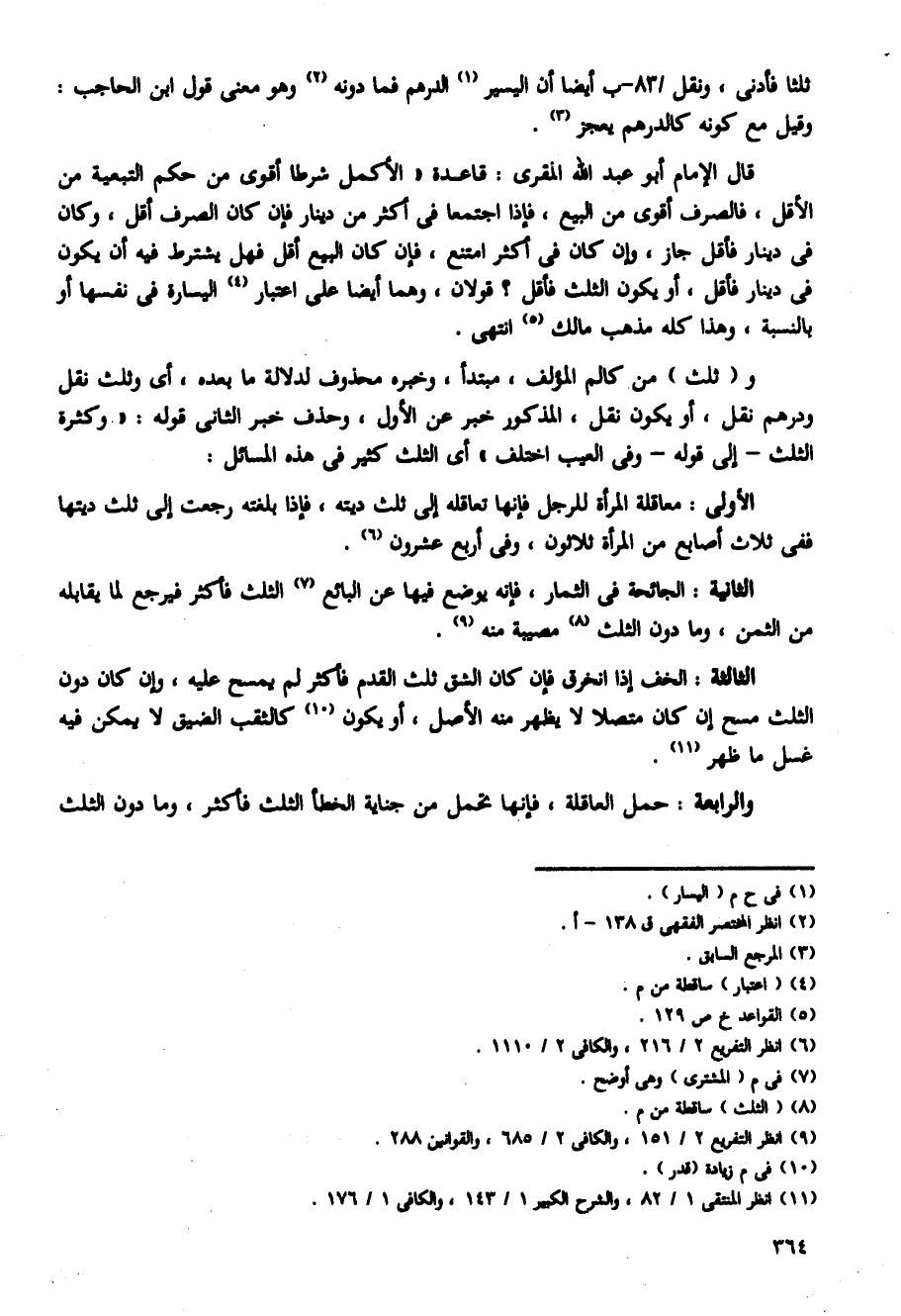 قال الإمام أبو عبد الله المقرى: قاعدة "الأكمل شرطا أقوى من حكم التبعية من الأقل، فالصرف أقوى من البيع، فإذا اجتمعا فى أكثر من دينار فإنه كان الصرف أقل، وكان فى دينار فأقل جاز، وإن كان فى أكثر امتنع، فإن كان البيع أقل فهل يشترط فيه أن يكون فى دينار فأقل، أو يكون الثلث فأقل؟ قولان، وهما أيضا على اعتبار اليسارة فى نفسها أو بالنسبة، وهذا كله مذهب مالك انتهى.
