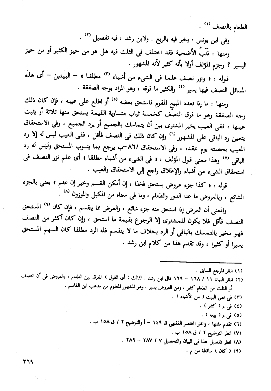 والمعنى أن العرض إذا استحق منه جزء شائع، والعرض مما ينقسم، فإن كان المستحق النصف فأقل فلا يكون للمشترى إلا الرجوع بقيمة ما استحق، وإن كان أكثر من النصف فهو مخير بالتمسك بالباقى أو الرد بخلاف ما لا ينقسم فله الرد مطلقا كان السهم المستحق يسيرا أو كثيرا، وقد تقدم هذا من كلام ابن رشد.